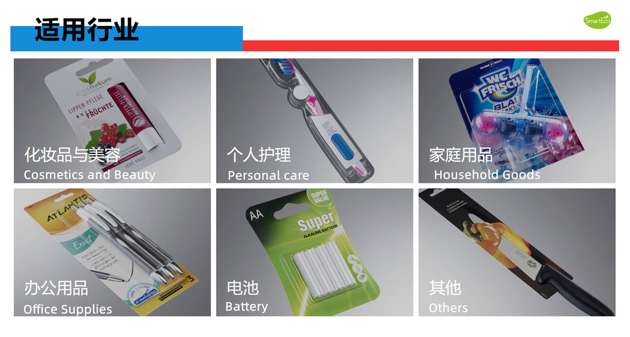 我們專業生產全自動紙塑(吸塑)包裝機,牙刷吸塑包裝機,電池掛卡包裝機,吸塑機等系列產品和多機智能聯動生產線及其相關配套設備。公司集生產、研發、銷售、售后為一體的企業。該產品適用于小五金(堿性電池、紐扣電池、膠水)、文具(卷筆刀、橡皮擦、涂改液、固體膠)、汽摩配(剎車片,雨刮片)、日用品(剃須刀、牙刷、牙線)、化妝品(唇膏,指甲刀,香水)、藥品(紅花油、風油精,)、玩具(小汽車,指尖陀螺,手表)、醫療器械、食品、等行業相關產品的紙塑包裝。